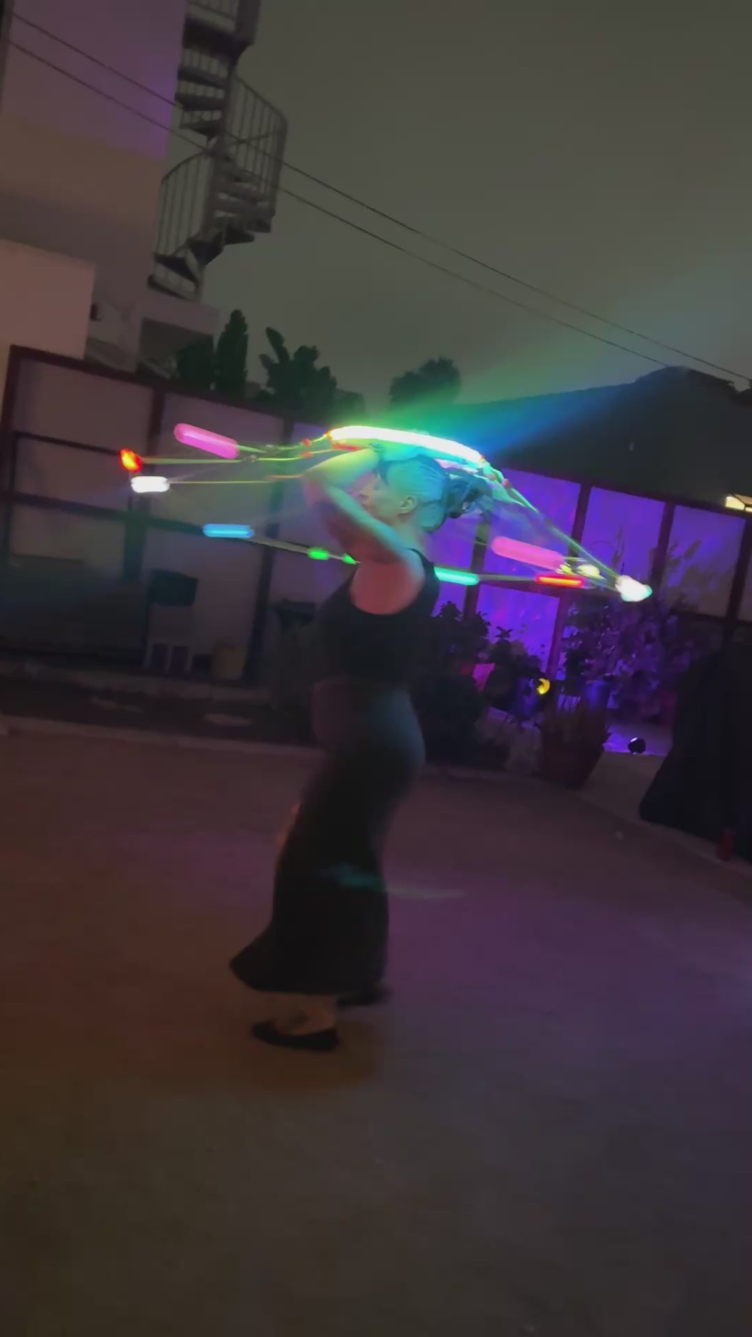 Each LED Sun Wheel features 12 bright UltraPoi lights, which come with 33 different color and strobe settings, as well as a lifetime warranty. The ring light features 100+ different patterns controlled via remote or ZENGGE phone app, available for iPhone and Android. The prop has 4-5 hours of battery life overall and is fully rechargeable via micro USB.